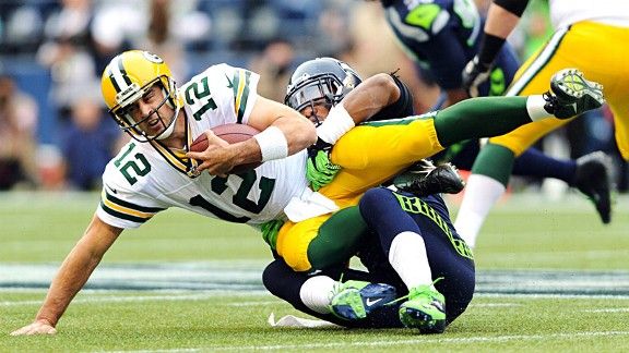 Aaron Rodgers sendo sackado. Cena que se repetia muitas vezes no jogo de ontem.